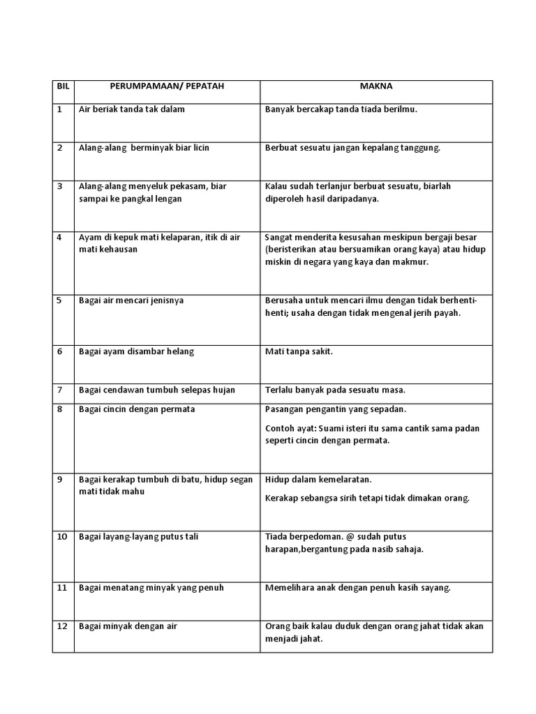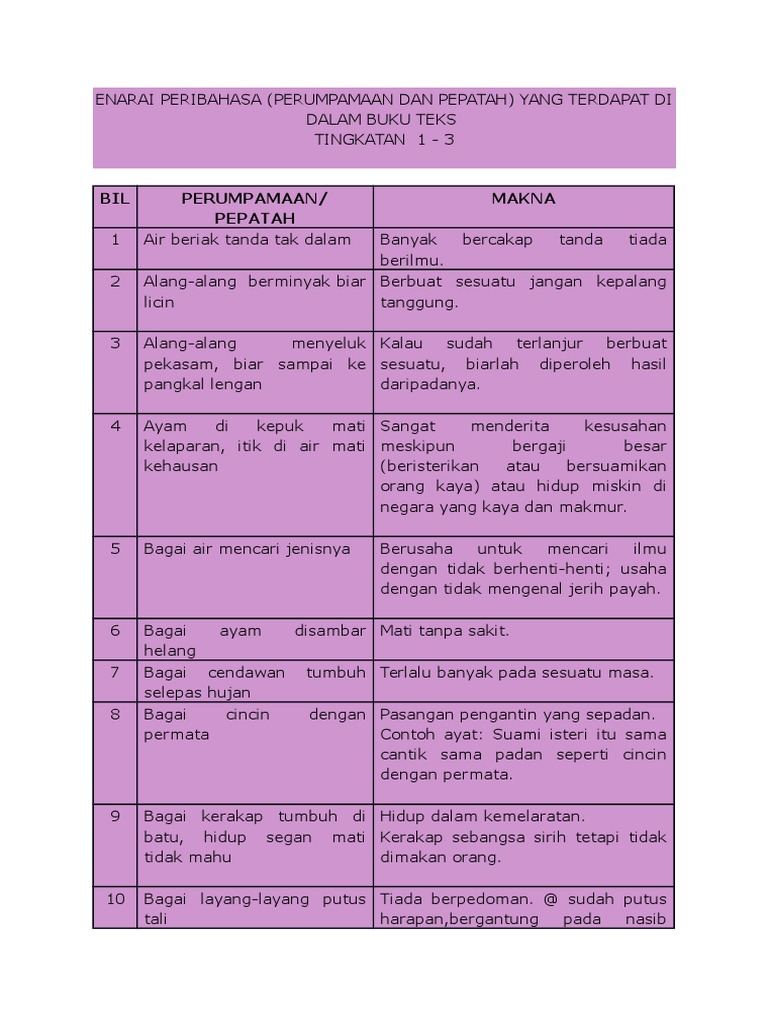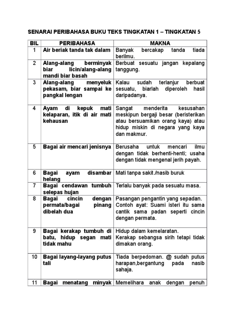 Senarai Peribahasa Buku Teks Pdf