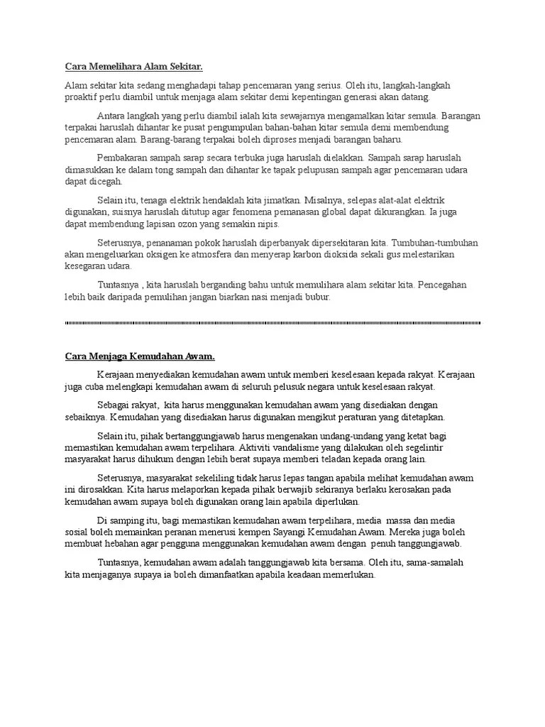 Unduh sebagai doc pdf txt atau baca online dari scribd. Karangan Syarahan Cara-cara Menjaga Alam Sekitar. Nota komsas isi karangan contoh karangan spm pt3 stpm.